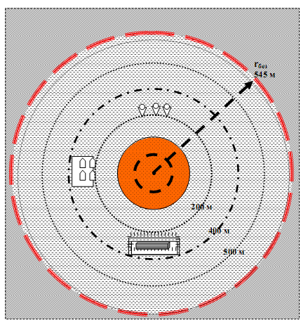 2) Граница безопасного удаления людей без защитной одежды от места аварии составляет 545м.
