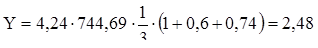 Y1 = (423943,84+0,2 ∙(312524,4+315245,3. )) ∙ 0,33 ∙ ( 1+ 0,6 + 0,74 )= 428608,29 грн.