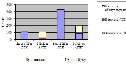 На малюнку 8.3. показано відображення економічного ефекту від впровадження АУПГ та ЛСК як противибухопожежні заходи.
