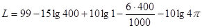 На открытой территории завода работает передвижная дизель-генераторная станция с октавным уровнем звуковой мощности, равной 99 дБ. Определить октавный уровень звукового давления около стен производственного корпуса, расположенного на расстоянии 400 м. Среднегеометрическая частота октавной полосы равна 1000 Гц, а пространственный угол излучения равен 4π.