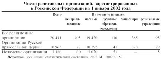 Ислам — вторая по числу верующих в России религия после православия. На территории нашего государства он начал распространяться в начале 40-х годов VII века. В настоящее же время ислам является традиционной религией более, чем тридцати коренных этносов России, а также значительной части мигрантов, прибывающих в Россию на постоянное и временное жительство. Религии принадлежит выдающаяся роль в формировании этих народов, становлении и развитии всех без исключения аспектов их культур, менталитета. Так по данным Госкомстата РСФСР, во время переписи 1989 года на территории республики проживало 12 миллионов мусульман. Мусульман в России сегодня, по экспертным оценкам отечественных ученых, от 12 до 15 миллионов человек, что составляет примерно восемь-десять процентов населения. [2, C.3]