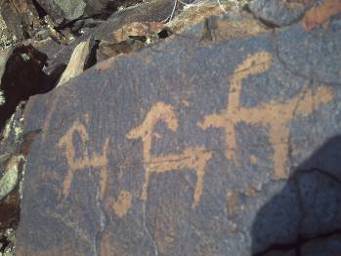 Рисунок 1 – Наскальный рисунок, обнаруженный среди петроглифов горного массива Кызыл-Кара, расположенного близ села Уш-Биик в Жарминском районе ВКО. Фото Х.Ш. Илиуфа – 2009 г.