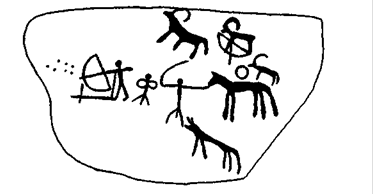 Рисунок 2 – Пиктографическая композиция из четырех мизансцен (эпоха неолита - III тыс. до н.э.). Петроглифы выбиты на валунах близ родника Буырлы-булак в Шубартауском районе Восточно-Казахстанской области
