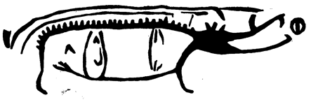 Рисунок 5 – Изображение дракона (огромного крокодила), пытающегося проглотить небесное светило. Нанесено красной краской на Шишкинские скалы. Верхняя Лена (Восточная Сибирь)