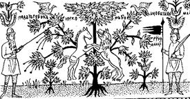 Мировое Древо Роспись с крышки сундука. Северная Двина. Конец XVII в.