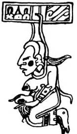 Следующим по рангу был бог кукурузы Йум Кааш. У майя издавна обожествлялся маис - основа их питания и, согласно “Пополь-Вух”, плоть людей, сотворенных богами [11, 133].В кодексе он представлен красивым молодым человеком, голова которого заканчивается в виде початка или окружена листьями маиса [приложение Б]. Часто он изображен выполняющим какую-либо земледельческую работу. У майя обряд человеческого жертвоприношения путем обезглавливания связан, по всей видимости, с культом маиса. На одной из сцен Дрезденского кодекса изображено, как воздается культ именно голове бога маиса; отсеченные головы вместо початков помещены среди листьев маиса на крестообразной фигуре в Паленке, известной как “Лиственный крест” и находящийся в храме того же названия.