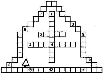 По горизонтали: 7. Полумесяц. 8.Сура. 9.Аравия. 10.Мекка.