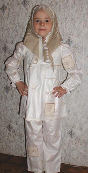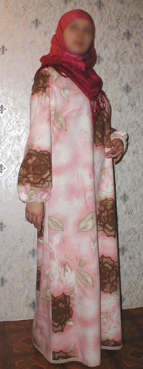 Женщина должна быть недоступна постороннему взгляду. Поэтому традиционное платье скрывает фигуру женщины. Открыты кисти рук и стопы до щиколотки. Обязательным атрибутом женской одежды является платок, которым покрывают не только голову, но и лицо. Лицо женщины, как и лик Бога Аллаха никто не может видеть.