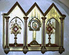 В самом правом из реликвариев хранится вторая частица мощей св. Софии, привезенная из Рима в 1938 году. В центральном реликварии хранится частица Животворящего Креста Господня.