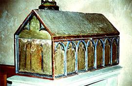 Выполненный из песчаника саркофаг (XIV в.), в котором с 1938 года хранится частица мощей святой Софии, установлен в церкви Эшо на белом постаменте с поддерживающими его небольшими колоннами. Он имеет следы стершихся от времени рисунков и барельефов, рассказывавших о некоторых сценах из жития мучениц. На стене, слева и справа над ковчегом, укреплены цветные скульптурные изображения мученика Христофора и основателя аббатства епископа Ремигия, а в центре – святой Софии и ее дочерей-мучениц.