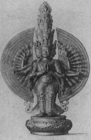 Главной же страной, где наиболее пышным цветом распустилось учение махаяны, был Тибет. В Тибет буддизм был впервые занесен в VII в. н. э., и по чисто политическим мотивам. Страна переживала тогда переход к классовому общественному строю, и объединитель Тибета князь Сронцзян-гомбо испытывал необходимость идейно закрепить объединение. Он завязал сношения с соседними странами - Индией (Непалом) и Китаем. Из Непала были заимствованы письменность и буддистское вероучение. По позднейшей легенде, сам Сронцзян был воплощением бодисатвы Авалокитешвары. Но буддизм проник в Тибет вначале в форме хинаяны и долгое время оставался чуждым народу, придерживавшемуся своих древних шаманских и родовых культов (так называемая "религия бон", или "бонбо"); буддизм был религией лишь придворных кругов.
