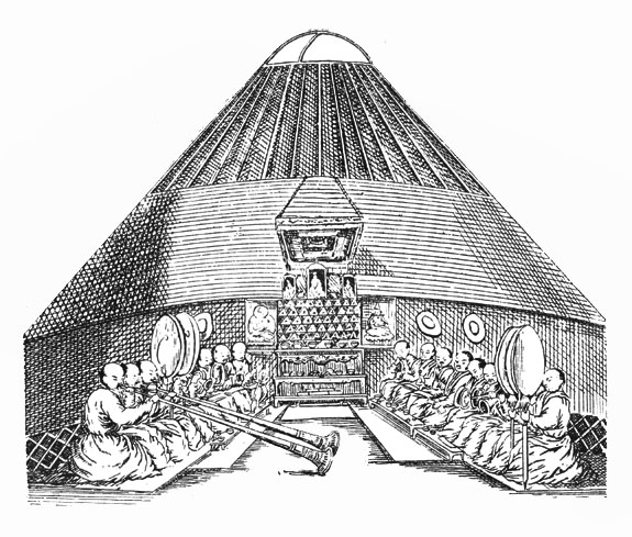 Буддистский храм в кочевой юрте калмыков, XVIII в. По рисунку П. Палласа