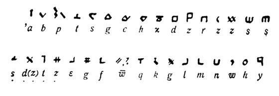 "Тайнопись эзидов" - так называют эту письменность. “Подавляющее большинство букв, по-видимому, создано заново на основе геометрических элементов - прямых линий, небольших квадратов, треугольников, углов и т.д.; некоторые буквы сходны с латинскими, имеющими геометрическую форму (I, V, T, L