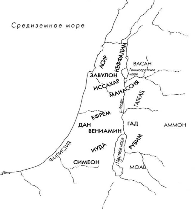 При разделе земли обетованной каждое колено получило тот удел (Нав. 13-19 гл.), который полагался ему по благословению Иакова. Уделы Иосифа и Левия (колено последнего было посвящено на служение при Скинии Завета и своего удела не имело) были разбиты между сыновьями Иосифа: Манассией и Ефремом, которых патриарх Иаков благословил и усыновил (Быт. 48, 19).