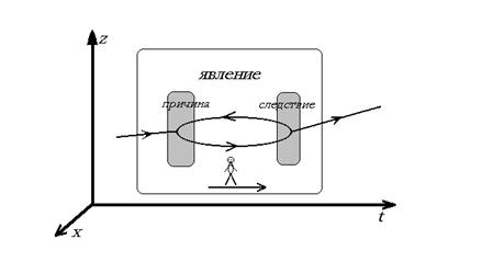 Нужно ли отказываться от традиционных представлений о причинно следственных связях? О том как они выглядят с учетом ВИО рассказывает рис.3. Установление полной причины явления оказывается возможным лишь в сравнительно простых случаях, и обычно научное исследование направлено на раскрытие лишь специфических причин.