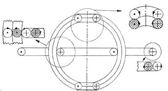 в котором кольцо радиуса rν преобразуется в n колец радиуса nrν. Кольца могут образовывать замкнутую спираль на поверхности тора или соленоид силовой линии поля той или иной природы. Отрыв n<<N звеньев от спирали может лежать в основе механизма излучения избыточной энергии или дробления ЭФ.