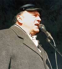 На будущий год будет 10 лет, как мы находимся в высшем эшелоне государственной власти. И я бы очень хотел, чтобы активисты ЛДПР, все наши сторонники помогли добиться нам победы на следующих выборах в Государственную Думу, которые состоялся ровно через год, ровно через год на этом месте мы проведем свой последний агитационный митинг. И 13 декабря, в субботу 2003 года, уже будет запрещена любая другая пропаганда, а 14 декабря, в воскресение, граждане пойдут выбирать. И мы очень хотим, чтобы, взяв в руки избирательный бюллетень, большинство избирателей, не колеблясь, поставили галочку напротив графы "ЛДПР", потому что 10 лет мы никогда не обманывали наших избирателей. С 1991 года, когда я стал кандидатом в президенты, нашим главным лозунгом стал лозунг "Мы будем защищать русских!", потому что мы живем в России, где основной и главный народ - русские. И русским может считать себя любой. Мы не требуем анализа крови и справок из архивов родословной, ибо войны и революции все это испоганили, испортили. И русским может считать себя любой, кто любит Россию, кто уважает ее, для кого русский язык родной. Но есть и те, кто любит Россию и не знают русского языка.