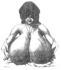 Как уже было сказано, молочная железа является одним из слагаемых весьма расплывчатого понятия женской красоты. О последней знают все, но определить ее также единодушно затрудняются. Ведь нравится же кому-то не столь уж редкий вариант, описанный Ниной Катерли в повести "Полина": "Культурница была крупная, грудастая, точно комод, у которого выдвинут верхний ящик". Вообще вариационный ряд по форме весьма обширен. Бюст миссис Мердль (Ч. Диккенс. "Крошка Доррит") должен был быть и действительно являлся большим, ибо предназначался, помимо общеизвестных функций, и для размещения драгоценностей мистера Мердля, символизируя тем самым процветание фирмы. Однако и этот поднимающий престиж бюст, которому многие спешили засвидетельствовать свое почтение, померкнул бы перед таковым у красавицы Суламифи, огромные груди которой напоминали всем взволнованным очертания гор Ливанских.