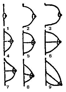 В древности существовали стерноманы, якобы умеющие гадать по груди. Думается, что на столь же научном уровне и изыскания итальянского эротолога Пьеро Лоренцони, определяющего по форме груди характер женщины. Формы укладываются в нижеследующие понятия: "Бутон" (1) - склонность к раздражительности; "Яблоко" (2) - повышенная чувствительность, такой формой груди обладала Мерилин Монро; "Ананас" (3) -экзотический вкус и слишком рациональный ум, а также невероятное упрямство; "Бокал для шампанского" (4) - бескомпромиссный характер, скрытность; "Венера" (5) - сходные качества. Выделены еще "Груша" (6), "Трамплин" (7), "Лимон" (8), "Пирожное" (9). Обладающие последней формой имеют характер гибкий и управляемый. Лично же я на шел ссылки в литературе на уподобление груди гроздьям винограда, манго, персикам, двойным горным вершинам, также двойным, но сернам, козлятам, башням, копьям, а по цвету - приравнивание к слоновой кости и сахарным головам.