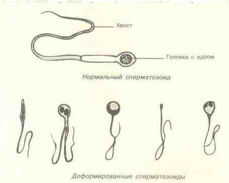 В среднем эякуляте всегда содержатся деформированные сперматозоиды. У них могут быть огромные, напоминающие головку хвостики, двойные хвостики или головки, а также головки конусной и округлой формы. Большое количество сперматозоидов неправильной формы снижает вероятность зачатия. Семя содержит в среднем почти 90% правильных половых клеток. Эта цифра может возрастать до 99% и понижается до 66%. Принято считать семя способным к оплодотворению, если оно содержит минимум 60-65% сперматозоидов
