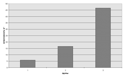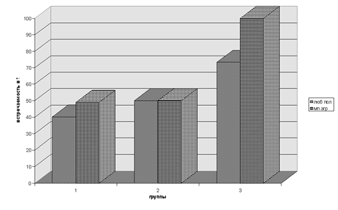 Статистически достоверные различия (р <0,01) обнаружены по следующим параметрам (везде в последующих диаграммах 1 - нормативная группа, 2 - лица без парафилий, 3 - лица с парафилиями):