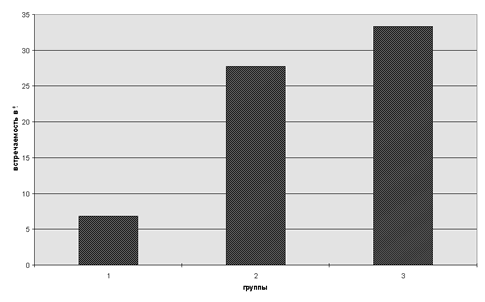 В этом случае можно видеть снижение частоты встречаемости этого феномена от нормативной группы до лиц с парафилиями;