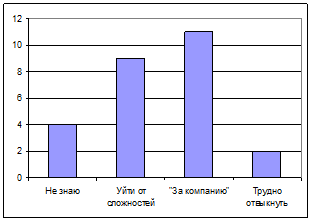 Потребления наркотиков, по мнению учащихся, начинается "за компанию", вместе с друзьями, из любопытства.