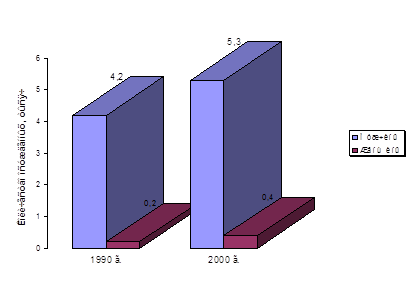 При этом следует учитывать, что (по данным социологических исследований) 82% белорусских семей тратят деньги в основном на питание, самую необходимую одежду и обувь. Свыше 10% – «денег хватает лишь на скромное питание», 1,9% – «случается живем впроголодь» и только лишь 5,7% – могут позволить себе все, что желают. Экономические трудности существенным образом отражаются на детях, т.к. в семьях сокращается потребление крайне важных продуктов питания, необходимых для нормального физического и психического функционирования и развития ребенка (овощей, фруктов, мясных, рыбных изделий и т.д.), что в свою очередь приводит к росту уровня заболеваемости. По данным Министерства труда и социальной защиты за последние 10 лет заболеваемость детей выросла на 35%, число абсолютно здоровых детей уменьшилось с 60% до 21%, а удельный вес детей, имеющих хроническую патологию, соответственно возрос с 10% до 22%. Особую озабоченность вызывает рост случаев рака щитовидной железы: он достиг 3 случаев на 100 тысяч детского населения (в странах Европы этот показатель не превышает 0,5 случая на 100 тысяч детей).