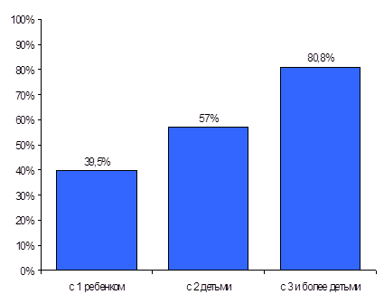 Особым объектом системы социальной защиты являются многодетные семьи, имеющие трех и более детей. Месячный доход большинства такого типа семей ниже прожиточного уровня [24, с. 97] (см. рис. 3.3).
