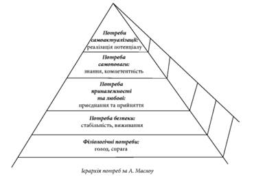 В основі цієї схеми лежить припущення про те, що потреби, які домінують і тому знаходяться в основі піраміди, повинні бути більш-менш задоволені, щоб людина змогла усвідомити наявність інших потреб і мати мотивацію їх задовольнити. Таким чином, фізіологічні потреби повинні бути достатньо задоволені, щоб виникли потреби в безпеці; фізіологічні потреби та потреби в безпеці і захисті повинні бути задоволені, щоб виникли і були задоволені потреби в приналежності та любові і т. д.