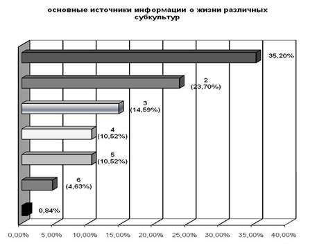 Респондентам задавали вопрос: «Что является основным источником информации о субкультурах?» Результаты получились следующие: