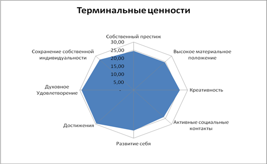 3.6 Мотивы профессиональной деятельности по результатам применения опросника терминальных ценностей