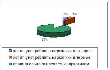 3) многие студенты не пробовали наркотические вещества и не хотели бы их пробовать в любом случае.