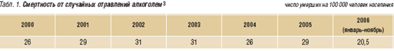 В 2006 году ситуация в алкогольной промышленности и торговле в стране заметно изменилась. В соответствии с поправками в Федеральный закон о государственном регулировании производства и оборота этилового спирта, алкогольной и спиртосодержащей продукции (171 ФЗ) был существенно увеличен уставный капитал для производителей спирта и алкогольной продукции, а региональным властям было разрешено повышать уставный капитал для розничных торговцев алкоголем. Закрылись мелкие заводики по производству спирта и алкогольной продукции. В июле 2006 года был утвержден список из четырех обязательных денатурирующих добавок для спиртосодержащих жидкостей, делающих эти жидкости непригодными для питья. Сменили и акцизные марки. Была внедрена Единая государственная автоматизированная информационная система электронной регистрации алкоголя (ЕГАИС). В 2006 году в России впервые за последние годы снизилась смертность: по данным Росстата, с января по август умерло на 76,7 тысяч человек меньше, чем за аналогичный период 2005 года. Причем смертность снизилась преимущественно за счет причин, связанных с потреблением алкоголя. Особенно сильно сократилась смертность от алкогольных отравлений [Алкоголизация.]. Доля умерших от случайных отравлений алкоголем за 11 месяцев 2006 года составила 82% по сравнению с соответствующим периодом 2005 года (табл.1 ). /21/