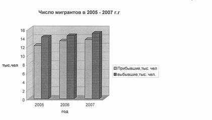 В 2007 году по сравнению с 2005 численность выбывших мигрантов возросла на 0,9 тыс., человек, или на 6,3%; в 2007 году по сравнению с 2006 годом произошло увеличение мигрантов на 0,6 тыс, человек, или на 4,1%.
