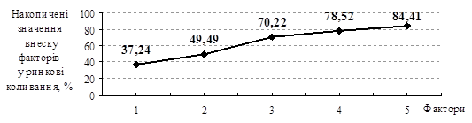 встановлено головні фактори утворення кон’юнктури аграрного ринку України: загальноекономічна ситуація в Україні (вплив – 37,24 %); виробничо-сировинний потенціал рослинництва (вплив – 20,73 %); стан розвитку тваринництва (вплив – 12,25 %); стан підприємств агропромислового комплексу, що обслуговують сільське господарство (вплив – 8,30 %); зміни цін на товари невиробничого споживання (вплив – 5,89 %), що забезпечило оцінку ступеня їхньої значущості;