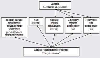 Рис. 1.1. Механізм звертання дитини та її законних представників з приводу порушення прав дитини [16, с. 23]