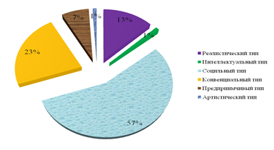 Результаты измерения показателя теста по определению типа личности Дж. Голланда у участников (после проведения занятий)