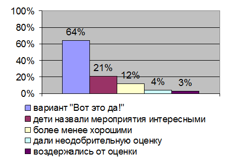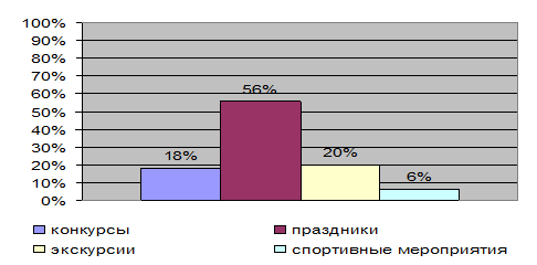 | в основном используются одни формы проведения досуговых мероприятий: игры, конкурсы, экскурсии, праздники, эстафеты, детские дискотеки | |