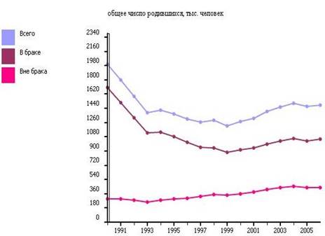 По данным Госкомстата в период с 1992 по 2007 гг. в России прослеживается следующая динамика численности браков и разводов (Таблица 2):[24]