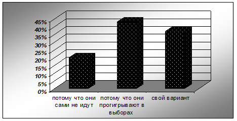Скромная роль, которую сегодня играют представительницы прекрасного пола в отечественном политическом пространстве, объясняется просто: их там мало. Во всяком случае, эта точка зрения является самой распространенной в нашем массовом сознании. По данным Всероссийского центра изучения общественного мнения, ее разделяют 46% россиян (35% мужчин и 55% женщин). Правда, весьма значительна и доля тех, кто полагает, что дам у нас во власти и бизнесе "столько, сколько надо", - так полагает 36% среднестатистических граждан (среди женщин - 29%, среди мужчин - все 45%). На словах за полное равноправие полов в социальной жизни выступают более двух третей россиян (данные Фонда "Общественное мнение"). Но как только речь заходит о конкретных шагах, например о введении квотного принципа формирования органов власти, выясняется: соотношение "50% женщин - 50% мужчин" поддерживает абсолютное меньшинство населения, причем обоего пола. Даже с 25%-м присутствием дам в Госдуме и правительстве согласна лишь четверть населения страны.