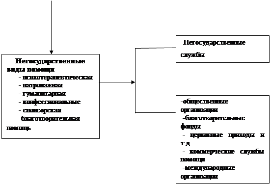 К негосударственной социальной службе относятся учреждения и предприятия социального обслуживания, создаваемые благотворительными, общественными, религиозными и другими негосударственными организациями и частными лицами.