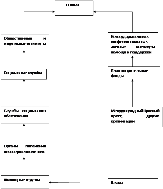 - механизмы социальной помощи «включаются» тогда, когда исчерпаны иные способы поддержки (психологические, моральные, договорные, законодательные).