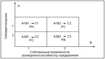 Матричный метод - широко используется в планировании и прогнозировании. Например, в практике маркетинга матричный метод применяется как метод оценки позиции предприятия на рынке, что позволяет принять решение о выборе одной из возможных стратегий: