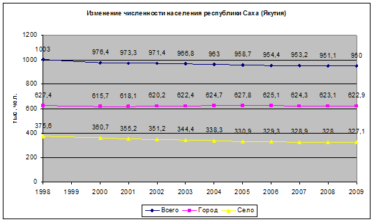 Таблица 1. Динамика численности населения Республики Саха за период 1998–2009 годы