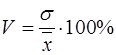 Коэффициент вариации (V) – отношение среднего квадратического отклонения к средней арифметической, выраженное в процентах: