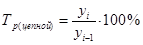 Интенсивность изменения уровней ряда динамики оценивается отношением текущего уровня к предыдущему или базисному, которое всегда представляет собой положительное число. Этот показатель принято называть темпом роста (Тр). Он выражается в процентах и рассчитывается по формулам: