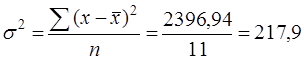 ) – среднее арифметическое квадратов отклонений значений признака от его средней величины.