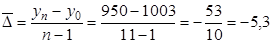 Расчёт среднего уровня динамики (с равноотстоящими уровнями во времени):