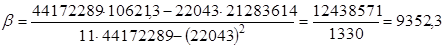 Тогда коэффициенты уравнения регрессии: